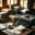 The author emphasizes the importance of comfort while writing, favoring a personalized workspace filled with quirky props and distractions. A dedicated corkboard showcases inspirational items, blending creativity and chaos with intriguing objects like throwing stars and poignant photos, reflecting a complex mix of beauty and frustration in their creative process.